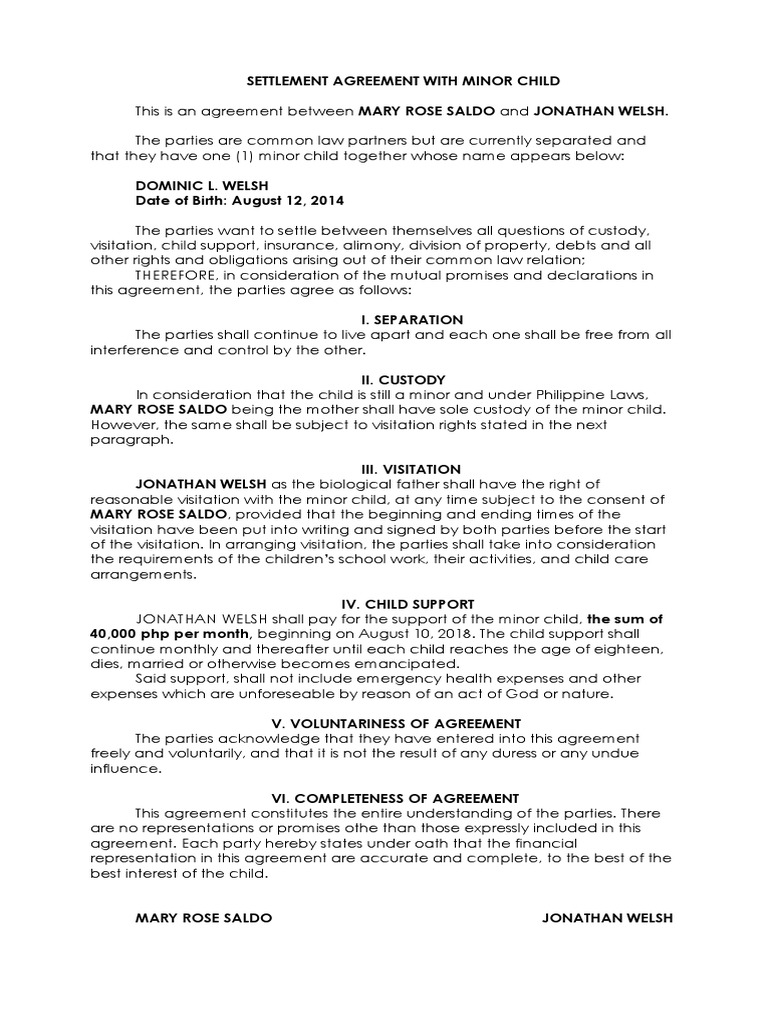 It is up to our generation to demand that leaders. The convention must be seen as a whole: Every child has rights, whatever their ethnicity, gender, religion, language, abilities or any other status. When the government of a country ratifies a convention, that means it agrees to obey the provisions set out in that convention. It is the most widely ratified human rights treaty in history. No restrictions may be placed on the (e) promote, where appropriate, the objectives of the present article by concluding bilateral or multilateral arrangements or agreements, and endeavour. The child shall enjoy all the rights set forth in this declaration. The agreement addresses issues such as physical and legal custody, visitation schedules, health insurance, college. States parties recognize the rights of the child to freedom of association and to freedom of peaceful assembly. Part of the politics series on. Child support, although paid to the parent, is the legal right of the child. As previously mentioned, a child custody agreement letter will detail topics such as custody and visitation schedules. The children's rights allliance is jointly funded by the atlantic philanthropies, the department of community, equality and gaeltacht affairs and the one foundation.